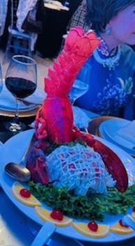 Lobster tập gym. lobster tập gym dùng 2 càng chổng ngược đầu thế vơ của Âu dương Phong { cô gái đồ long } món ăn chính của nhà hàng! có lẽ chủ nhân nhà hàng muốn anh chị em y khoa hải ngoại ḿnh ăn vào th́ sức lực dẻo dai đi dự ĐHYKHHN mệt nghỉ !