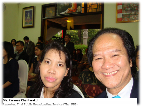 Tiếp đó, cô Ms. Paranee Chantarakul, phóng viên của Thái Public Broadcasting Service - Thai PBS- đă yêu cầu được chụp một bức h́nh lưu niệm cho tôi với ông Bộ Trưởng Ngoại Giao Mr. Prachuab Chaiyasan và ông Đại Sứ Thái Lan Mr. Anuson Chinvanno.