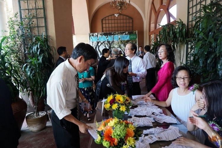 Bàn Tiếp Tân làm việc tất bật, vậy mà ai nấy vẫn cười tươi. Quý phu nhân của YKH đã không nề hà, góp tay phụ trách phần nặng nhọc nhất của Đêm Đại Hội. Đầm ấm, quá đầm ấm không khí gia đình!