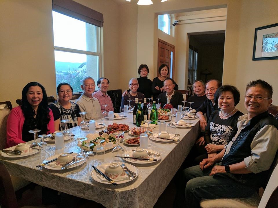 Từ trái qua phải: chị Khánh, chị & anh Tạ Quang Thạch ( KQ/ Pleiku), anh Bùi Tá Khánh, anh & chị Vĩnh Chánh, chị & anh Phạm Đồng, anh Dược Sĩ Nguyễn Hữu Tiến (Quân Y Nhảy Dù), anh & chị Hoàng Gia Viễn (phi công F5), anh Đoàn Vũ (TĐ14ND, mà vợ là người bấm máy chụp hình).