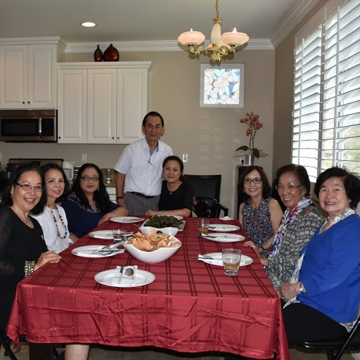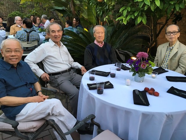 14/ Vài ngày trước đại hội, vợ chồng chúng tôi hân hạnh được Thầy Cô Võ Đăng Đài mời đến ăn tối ở nhà con trai Bryan tại New Port Beach. “Nhớ đem theo cả Bồ Câu nữa nghe”. Thật là chu đáo và cảm động! Đây cũng là dịp chúng tôi gặp Thầy Cô Nguyễn Văn Tự cũng như làm quen với Bryan và nàng dâu mới xinh đẹp của Thầy Cô Đài. Nhà rộng lớn, xưa, đã được sửa lại thật thanh thoát và trang hoàng theo kiểu Nhật. Cho nên menu bất ngờ hấp dẫn, đặc biệt với hương vị Nhật do chính cặp gia chủ trẻ tự tay soạn nấu.