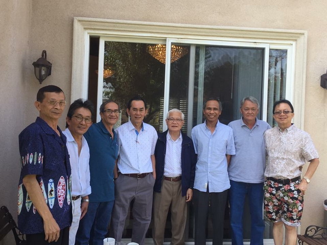 Trong hình: Đứng (trái qua phải): Lê Huy Định (Dallas), Hồ Viết Hiếu (Jacksonville), Huỳnh Bội Tân (Santa Ana), Bửu Phụng (Fountain Valley), Trần Đức Lợi (Seattle), Nguyễn Đoàn ( Santa Ana), Đặng Hữu Toại (Garden Grove). Ngồi: Nguyễn Chi (Las Vegas), Diệc Kiến Quân (Montreal), Lê Đức Tâm (Montreal).Trong hình còn thiếu Chị Quy, dâu khóa 10 (tức chị Trần Tiển Hiền) từ VA, Tôn Nữ Hải Lan ( Oceanside), Võ Hồng Hoa (Santa Ana), vợ chồng Võ Di Sơn & Liên (Vương quốc Belgique) và Lê ĐìnhThành (Boston). Nhìn 2 bạn Sơn & Liên quay cuồng trong điệu twist trong buổi sáng Brunch mà huynh đây rất cảm phục. Bravo anh chị Phụng & Mai tiếp đón bạn đồng khóa một cách nồng nhiệt. Thật tuyệt vời!