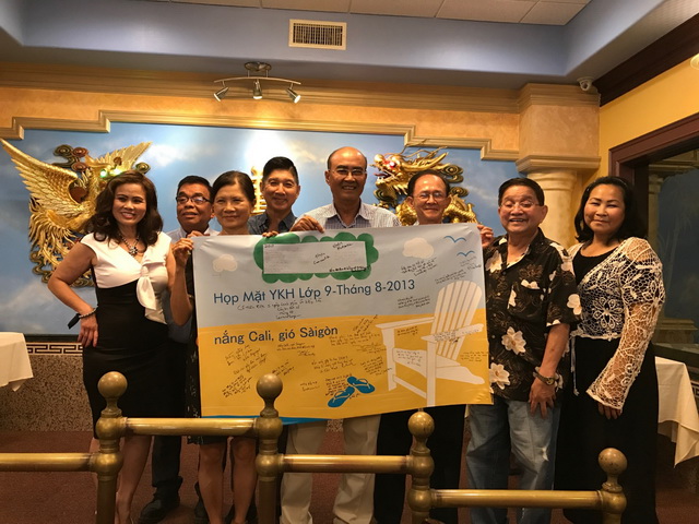 8/ Cũng tại party hội ngộ khóa 10 này, một chuyện lạ xẩy ra khi 2 bạn khá thân, Nguyễn Chi và Trương Đình Liêm, bỗng xông lại ôm cứng nhau và la bai bải sau một thoáng nhìn sửng lấy nhau. Phải Chi không? Liêm đây- Liêm há!? Chi nè! Hỏi ra mới biết, cả hai chưa gặp nhau kể từ sau 1975, dù một người ở ĐN là Chi và người kia ở SGN là Liêm. Hai bạn cũng đã từng là bạn cùng lớp ở trung học Thiên Hữu, và sau đó ở trường YKH. Nay một người định cư tại Hoa Kỳ từ 2 năm nay là Chi, còn một người thường xuyên qua Mỹ thăm 2 con gái sinh sống ở Little Saigon là Liêm. Đúng là một gặp gỡ kỳ diệu, không ở trong nước mà lại ở “ngoại quốc”. Và sau 42 năm. Hy hữu quá, phải không quý vị?!