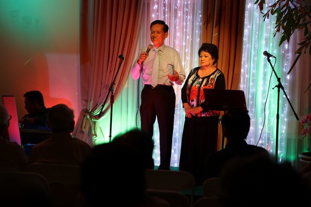 Gần 8 giờ tối, mọi người được mời vào bên trong nhà tham dự văn nghệ. Cho đầy đủ với nghĩa “ăn chơi”. Vì đây có thêm cả khiêu vũ, nên nhạc có vẻ giựt gân, mạnh bạo với những bản nhạc sống động, khiến người nghe, nếu chưa ngứa chân đủ để ra sàn nhảy, thì cũng phải uốn éo theo tiếng nhạc. Tôi chú ý đến bạn Phan Anh Tuấn, #12, trình diễn bản nhạc rất có hồn.