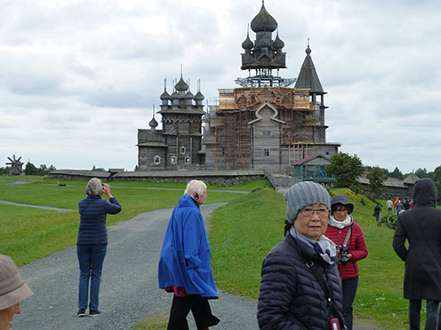 Vào ngày thứ 7 của chuyến thủy hành, tàu ghé đảo Kizhi nằm trong biển hồ Onega. Rộng 10.000 cây số vuông, do 50 sông nhỏ và 1.000 giòng nước ngầm đổ vào. Có 1.300 đảo. Ở đây nhà thờ, nhà cửa đều làm bằng gỗ. Lối kiến trúc không dùng bất cứ cái đinh sắt nào. Hướng dẫn viên địa phương dẫn cho xem Nhà Thờ Chính Thống Giáo, được xây dựng từ 1714, rất lớn tưởng chừng phục vụ cho mấy chục ngàn tín đồ, thế nhưng được biết dân làng ở đây có vào khoảng 8.000 nhân khẩu. Khách du lịch được vào xem căn nhà kiểu mẫu bằng gỗ của người dân thời xưa. Cách sắp đặt phòng ốc khắc hẳn với thời nay. Dân chúng rời bỏ làng, đến St.Petersburg kiếm việc làm, khiến cho sự xuống cấp kinh tế vào thế kỷ thứ 19. Nhà thờ do UNESCO bảo trợ gìn giữ.