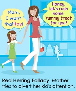 Ngụy biện với cha mẹ: Chị họ mình có thằng con vừa rớt kỳ thi tốt nghiệp trung học. Mẹ nó la thì nó trấn áp: ngồi đó mà nói, tưởng bở ăn à, có giỏi đi thi là biết liền? Đứa con này phạm hai lỗi ngụy biện là tấn công cá nhân (ad hominem) và ngụy biện anh cũng vậy (tu quoque). Nhiều đứa trẻ sử dụng ngụy biện dựa vào cảm xúc (appeal to emotion) và lợi dụng sự thương hại (ad misericordiam hay appeal to pity). Than bệnh hay mệt để khỏi phải học bài, làm bài. Trẻ em cũng thường dùng ngụy biện hai sai thành đúng (two wrongs make a right). Mẹ hỏi sao bị điểm kém ở trường thì Tèo biện hộ rằng thằng Tí nhà bên điểm còn thấp hơn nó nữa.