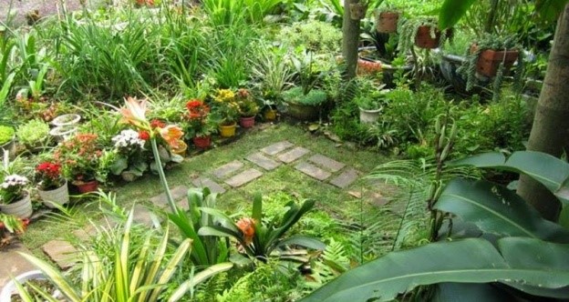 Trừ một khoảng hẹp dành cho lối đi, phần còn lại sắp những hộp xốp trắng để trồng những cây, lớn nhỏ cao thấp không đều san sát nhau. Bây giờ đang là mùa hè trong khu vườn này. Sát góc phải, trong hộc đất lớn nhất, một gốc cà chua đã khá lớn, thân cây men theo cọc tre đã leo lên, dựa vào bức tường nhà bên, mang vài chùm trái nửa xanh nửa hồng. Dưới gốc cà chua, chen chúc trong phần đất còn lại là vài cành tần ô èo uột cố vươn thật cao để kiếm chút nắng hiếm hoi. Trong cái mảng xanh lam này có thể tìm gần đủ loại rau thơm, từ rau tía tô tím dày, rau tần, rau răm, ngò, rau thơm cho đến vài bụi hành hẹ bên một gốc ớt trái nhỏ. Nếu thu lượm tất cả chắc cũng đủ gia chút hương vị cho một tô phở hay bún bò Huế. Sát góc tường bên lối ra là một thùng nhựa đựng nước, một ly nhỏ để tưới cây đặt trên một miếng gạch đúc. Gần đó bụi cây diếp cá tươi tốt, loại rau này vốn ưa nước mọc như cỏ dại ở bên ta. Trong cái yên lặng của khu vườn nhỏ, cái lu nước, cái gáo nhỏ đặt trên viên gạch, vài bụi rau thơm, nếu có chút gió xì xào qua kẻ lá tre chắc có thể gợi cho ta hình ảnh một góc đất ngoài vườn, sát gian nhà bếp của chốn quê Việt Nam.