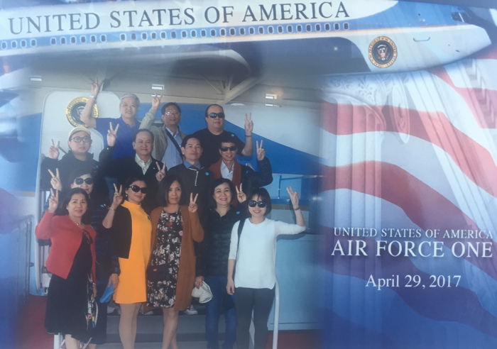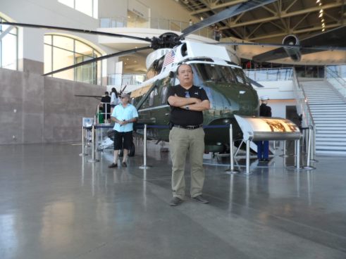 Sau hành trình qua các khu thư viện bảo tàng, chúng ta sẽ ra đại sảnh lớn trong đó có nguyên cả chiếc máy bay Boeing Airforce One và trực thăng Marine One thời ông Reagan hay di chuyển, hiện nay đã đóng chiếc mới cho các tổng thống khác đời sau, chiếc cũ kéo về đây làm bảo tàng và khách có thể vào xem bên trong và chụp hình lưu niệm 20USD một tấm tùy thích và cuối cùng như bất cứ chỗ nào tham quan tại Mỹ và thế giới… móc túi du khách với đồ lưu niệm “Made in China” trung bình 20USD một món, du lịch Mỹ không có gì cưỡng ép hay chèo kéo thích thì mua không mua cũng tốn tiền nước café nghỉ chân vài ba đô la là chuyện thường… nhưng ai cũng vui vẻ đóng góp cho “đế quốc Mỹ”.