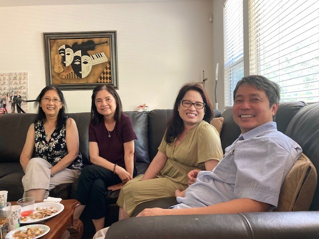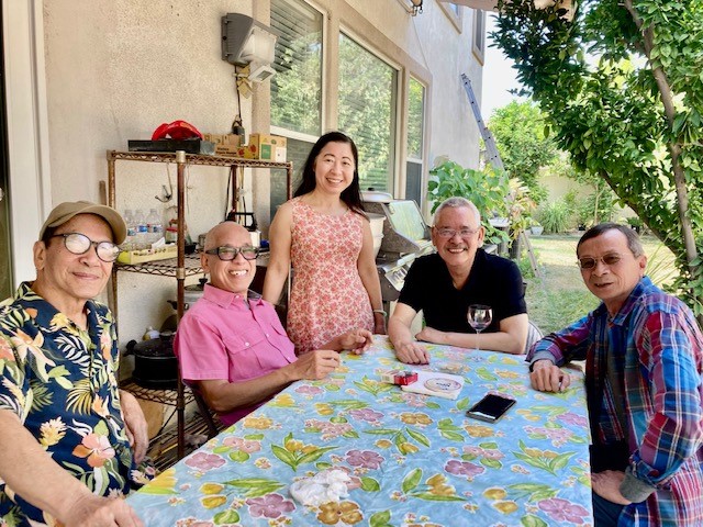 Biết vợ chồng Diệc Kiến Quân & Quỳnh Hoa từ Montreal đến Cali từ giữa tháng 7, 2022, nhưng phần thì Quân Hoa muốn dành thì giờ cho Mẹ già và gia đình sau trên 3 năm không gặp nhau vì Covid, phần thì Quân Hoa vẫn còn chút e con virút này, nên mãi đến thứ Bảy, ngày 6 tháng 8, 2022, chúng tôi mới đón tiếp được đôi bạn này tại nhà, do cặp vợ chồng em trai của Quỳnh Hoa chở đến. Cám ơn vợ chồng Chương. Về phía ta chỉ có đàn anh Lê Văn Danh đi cùng với vợ chồng Phụng Mai. Rất tiếc các bạn trong BBT còn lại không có mặt vì nhiều lý do… thầm kín…