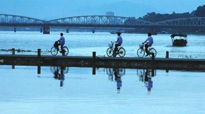 Ngôi nhà có hai người con gái: Á Nam và Lục Hà. Chị Á Nam trang lứa với chị tôi. Tôi thường nh́n thấy chị đạp xe đi học về, h́nh như lúc nào cũng muốn vội vào nhà. Tôi đứng bên kia đường ôm cặp nh́n chị với tà áo dài trắng, tóc không thả bồng bềnh mà lại được buộc gọn gàng sau vành nón, chị đạp xe vào nhà rất nhanh, tôi chưa lần nào thấy rơ ràng nét mặt chị. Thấp thoáng và rất nhanh là h́nh ảnh chị Á Nam trong mắt tôi. Đôi lần vào buổi chiều bơi dọc theo ḍng sông, qua khu bến nhà chị, tôi thấy chị ngồi cúi đầu mài gót chân trên đá. Lúc bấy giờ tóc chị thả bồng bềnh, gió và nắng chiều trên mái tóc, người và ráng chiều. Tôi thầm hát một ḿnh: “Đàn chim tung cánh xa khuất mờ, chiều thu lưu luyến màu thương nhớ, nhớ mái đầu ai nhuộm nắng vàng...”. Và cứ thế mà tôi mơ mộng.