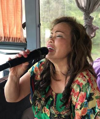 Trên đường đi đến động, ḿnh cảm thấy giờ chia tay sắp đến nên muốn làm náo cho quên buồn. Hối thúc Danh lên làm tuồng trước bằng một bài ca, rồi xúi Mỹ Đức ngửa mũ ra xin tiền. Tiếp đó là chị San, nữ hoàng sân khấu của chúng ta. Thế là chẳng mấy chốc hết người này đến người khác thay nhau lên làm tṛ. Anh Bách kể chuyện t́nh của anh và Mỹ Đức mà đêm trước rồi đến hôm đi trên xe buưt mà vẫn chưa xong, nên quyên được ít tiền nhất! Mỹ Đức ngâm thơ và hát hay nhất nên quyên được nhiều nhất. Ngoài Mỹ Đức ra, YKH ḿnh có một tài năng mới rất "ăn tiền" là anh Lê Đ́nh Cường và Thu Giang, đến từ Australia. Anh Cường có tài ăn nói rất duyên dáng với giọng rất Huế v́ nhà anh trước ở đường Mai Thúc Loan. Anh kể chuyện rất hay, nói chuyện tếu hết sẩy, lại c̣n xuất khẩu thành thơ nữa.Trong đại hội tới ḿnh đề nghị hội phải mời chị Mỹ Đức và anh Cường vào trong ban văn nghệ.