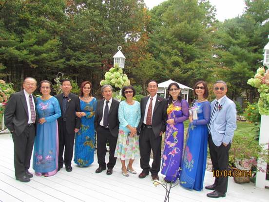 6/ Nhân đám cưới con trai Lê Tâm của vợ chồng Lê Đ́nh Thành, #10, vào ngày 4 tháng 10, nhóm bạn YKH ở Montreal, gồm vợ chồng Diệc Kiến Quân, Lê Đức Tâm, cùng vợ chồng Vơ Di Sơn bay qua từ Belgium, và chị Trần Tiễn Hiền từ MD, đă rủ nhau tụ về Boston để chung vui với Thành & Thảo. Nhờ vậy mà có một reunion nhỏ của khóa 10 với Thầy Cô Nguyễn Văn Tự, anh chị Lê V. Chỉnh & Như Mỹ, anh chị Phan Anh Tuấn… Biết được đám cưới tổ chức rất linh đ́nh trong 3 ngày liên tiếp, chu đáo và theo cổ truyền và tuy tin vui đến trễ, chúng tôi chung vui với anh chị Thành & Thảo và thân mến chúc 2 cháu Lê Tâm & Huỳnh Linh. Nhân đây chúng tôi cũng cám ơn anh chị Thành thêm một lần nữa khi đă trân trọng đón tiếp quư Thầy Cô và ACE trong YKH tại nhà hàng của ḿnh trong chuyến ghé thăm Boston của phái đoàn tham dự ĐH 2014. Cung Hỷ. Cung Hỷ. Rất tiếc không có sẵn đây tấm h́nh của Cô Dâu Chú rể để khoe với làng.