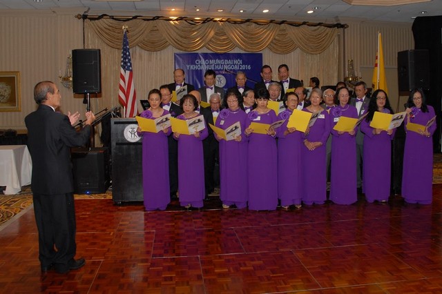 Cũng đáng để tự hào, chương tŕnh khai mạc diễn ra đúng 6g chiều. Vài phút cho MC làm việc, xong là Lễ rước Quốc Kỳ Hoa Kỳ và Quốc Kỳ Việt Nam Cộng Ḥa. Trang nghiêm, đẹp, đoàn rước cờ đi đều lên trước sân khấu, chia ra hai bên, quư bà đứng trước, quư ông ở sau. Sau hiệu lệnh của MC, bài hát The Star-Spangled Banner được cất lên một cách hùng tráng bởi giọng ca tuyệt vời của BS Lê Đ́nh Thương. Trong lúc đó, tất cả mọi người đặt tay phải lên trái tim, thầm biết ơn đất nước quảng đại và nhân ái đă mở rộng ṿng tay tiếp nhận những con dân Việt Nam lưu vong v́ không thể chịu đựng được một chế độ độc tài, hà khắc của Cộng Sản Việt Nam. Tiếp đó, tất cả mọi người trong Hội trường cùng đồng thanh cất cao tiếng hát: Này Công dân ơi… Khóe mắt tôi bỗng dưng cay cay, thị giác tôi bỗng nḥa đi và giọng hát tôi bỗng dưng nghèn nghẹn! Cái cảm giác mà tôi đă trải qua một lần gần 5 năm trước đây trong lúc dành một phút yên lặng để từ bỏ quốc tịch Việt Nam trong buổi lễ tuyên thệ để trở thành công dân Hoa Kỳ! Rồi tiếng MC cất lên mở đầu cho phút mặc niệm các bậc tiền nhân đă có công dựng nước và giữ nước, các chiến sĩ và đồng bào đă bỏ ḿnh cho lư tưởng tự do cùng quư Thầy Cô và đồng môn đă từ trần. Tiếng saxo trỗi bài Hát giang Trường hận tức Hồn tử sĩ làm tôi bỗng rùng ḿnh nhớ lại những h́nh ảnh tang thương của Huế trong và sau Tết Mậu Thân! Vào những ngày đó, khi chiếu phóng sự về nhưng chuyến đi t́m xác thân nhân của những người mẹ, người vợ, những người có con, chồng, cha bị giặc bắt đi, khúc nhạc này liên tục được trỗi lên. Kỷ niệm đau thương lại tràn về trong kư ức, nỗi đau tha hương lại dằn xé tâm can! Ôi, biết đến khi nào…!!!