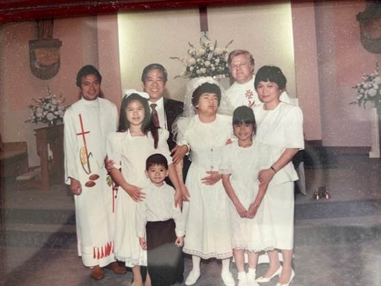 ** H́nh chụp cháu Bồ Câu nhận phép Rước Lễ Vỡ Ḷng, tháng 6, 1993 tại nhà thờ Saint Michael, thị xă Leesville, Louisiana