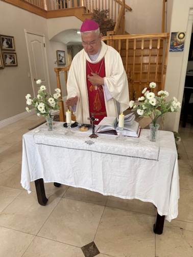 Qua thứ Hai, ngày 17 tháng 6, vợ chồng chúng tôi và cháu Bồ Câu được anh chị Bs. Nguyễn Ngọc Kỳ & Lê Tín Hương mời đến dự lễ do chính Đức Tổng Giám Mục Giuse Đặng Đức Ngân tự tay dâng lễ tại tư gia anh chị. Đây là chuyến công du nước ngoài đầu tiên của Ngài sau khi Ngài được Đức Thánh Cha Francisco tấn phong Tổng Giám Mục Phó, Tổng Giáo Phận Huế. Đây là lần thứ ba cháu Bồ Câu và cha mẹ cháu được dự lễ do Đức Giám Mục Giuse Đặng Đức Ngân dâng lễ tại tư gia anh chị Nguyễn Ngọc Kỳ. Chúng tôi vô cùng cảm xúc khi biết biết trong thánh lễ hôm nay đặc biệt chỉ có 6 người, gồm Đức Tổng Ngân, anh chị Kỳ và 3 chúng tôi.